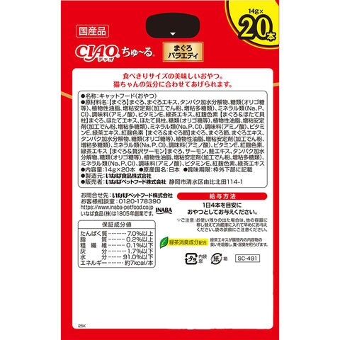 メーカー画像 CIAO チャオ ちゅ~る BOX まぐろバラエティ 14g×20本 4901133444562 SC-491 猫 ねこ ネコ キャット cat CAT チャオ ちゃお 猫用 ねこ用 猫フード キャットフード 猫餌 猫えさ きゃっとふーど おやつ オヤツ トリーツ 間食 猫おやつ ペースト 液状 液体 レトルト ウェットフード ウエットフード ちゅ~る ちゅーる チュール 鮪 まぐろ マグロ ほたて 帆立 ホタテ まぐろ節 マグロ節 鮪節 サーモン 鮭 サケ さけ フィッシュ 魚介 シーフード バラエティパック 大容量 多頭飼い ボックス 箱入り アソート 国産 日本産 20260402 y26m04 ngtk