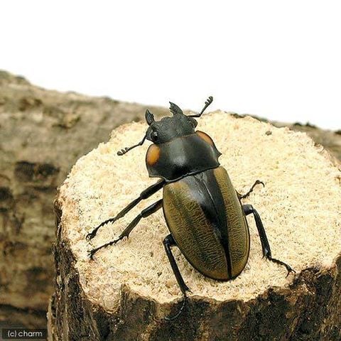 | 繁殖 | ツヤクワガタの仲間は産卵木等には産卵をせず、カブトムシのような産卵セットを用います。発酵の進んだ微粒子マットをケースの底から3cm程硬く詰め、後はマットを10cm程軽く敷くだけで十分です。基本的にはバラ撒き型の産卵を行うので、産卵木は不要でマットの質が重要です。産卵させるのが難しい種も多いですが、産卵すれば非常に産卵数が多いのが特徴です。本種はあまり温度が高いと産卵にいたらず、幼虫は高温、低温に弱くデリケートな面を持っています。 幼虫はカブト用の発酵マットが適しています。幼虫はマットの中を穿孔しないで、その場で居座って居食いをします。マットの入れ替えに弱く、マットを全て交換すると死んでしまうことも少なくありません。また、幼虫は非常に大食漢で、大型種の3令幼虫はかなり大きくなります。大き目のプラケースやボトルで飼育し、マットは減った分だけ足していくと良いでしょう。 3令後期になって土繭を形成したら土繭を壊さないように注意が必要です。土繭を壊してしまうとそのまま死んでしまうことが多く、羽化までこぎつけても羽化不全しやすくなります。また、土繭を形成したら土繭内の湿度が上がり過ぎないように、土繭をそのままマットから露出させて乾燥気味にすると羽化不全を防ぐことができます。 大型個体の作出は良質なマットと低温飼育がポイントです。普通に育成しただけでは長歯型を得るのは難しく、低温管理でじっくり育てないと体だけ大きい短歯型の個体になりやすいです。マットには他のクワガタで使用した菌糸ビンの食べカスを混ぜてやり、3令の期間をじっくり時間をかけて育てることがポイントです。オスはこの場合羽化までに2年程度を要し、メスとの羽化ズレが起こるので注意が必要です。 |