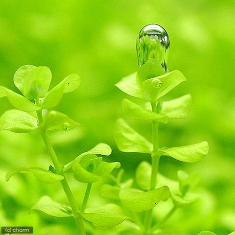 | どんな種類? | ゴマノハグサ科(Scrophulariaceae)の植物。丸葉で明るい緑色の葉を規則正しく展開するレイアウト用としても人気の高い種類です。 気泡を付けやすい種類で、群生させると非常に美しいです。育成も難しくなく、生長もそれ程早くないので中景などに最適です。 60cm水槽で3灯以上、中性~弱酸性、ソイル、CO2添加あり、液肥主体の施肥で育成しやすいです。茎の節目から根を出します。葉序は対生、無柄。施肥は液肥中心に行います。 新しい水を好む種類です。底砂が汚れていたりすると調子が中々上がらない場合が多くプロホースなどで掃除してから植え替えると状態がよくなることが多いです。 下葉を落としやすい種類の為、前景にはブリクサなど根元が見えないレイアウトにするとよいでしょう。 |