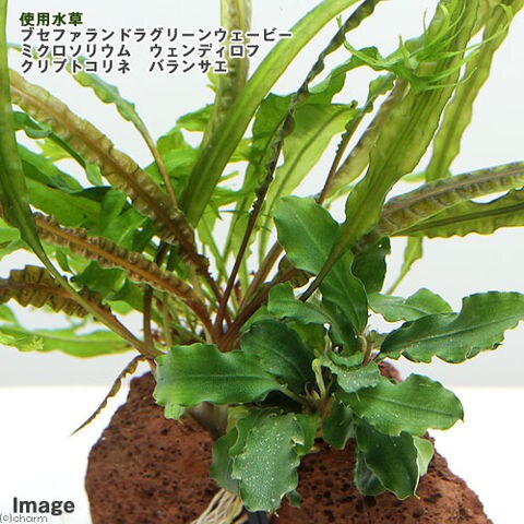 | 商品特徴 | 穴あき溶岩石に水草をレイアウトした商品です。商品が到着してから、水槽に沈めるだけで 簡易レイアウトが楽しめる商品です。お好みの種類を選んでお楽しみください。 セット初期は移動可能ため、掃除しやすいです。 (時間が経過すると、水草の種類によっては根を張りますので、移動が困難になる場合もございます)シュリンプ、コリドラス、ブッシーなど低層魚中心の水槽にもお勧めです。 |