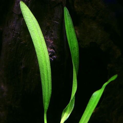 台湾便で入荷したエキノドルスで、細長い葉に新芽はやや赤く色づき、古い葉は緑色のグラデーションが大変美しい品種です。 流通量もまだ少ない品種のため、レイアウトやコレクション両方で楽しめます。 エキノドルスの仲間は基本的には南米原産の種類ですが、一部アフリカに帰化していると言われている種類があります。 それがいわゆるアフリカヌスで、カメルーンに帰化していると言われています。 本種は東南便で入荷するアフリカヌスと草姿は酷似しております。 このあたりの情報は定かではありませんが、本当にカメルーンから来たものであれば、リアルアフリカヌスと言えるかと思います。 アフリカヌスはアクアリウス属に変更後、ウルグアイエンシスのシノニムとなっています。 ある程度の照明(60cm水槽で3000lm程度の光量)と、できれば外部式フィルターや水中フィルター等のCO2を逃がしにくいタイプのフィルターの使用がお勧めです。また肥料分の吸収の多くを根から行う為、底床は厚めに敷いて下さい。古くなった葉はコケが付きやすくなり、色もくすんできますので、できるだけ付け根の近くからハサミでカットしてください。 植え替えを行うと株が弱ります。頻繁に植え替えを行うと株の体力を消耗しきり成長が止まってしまったり、最悪枯死してしまう場合もあるので注意が必要です。 逆に長期間植え替えずに維持すると水槽の半分を占めるほどのサイズとなる場合もあります。植え直しを行うことによりサイズを調整することができます。ただこの場合、根がかなりの広範囲に渡ってはえているいることが多いので、底床にはさみを入れて根をカットしながら慎重に引き抜いてください。 水槽には後景草やセンタープラントとして配置できます。 大型で葉が細長くなるため、排水パイプ付近に配置すると葉がたなびくようになる為、非常に見映えがします。 |