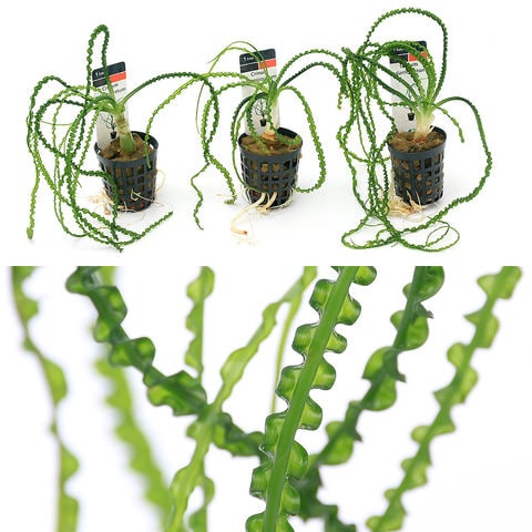 | 説明 | ヒガンバナ科(Amaryllidaceae)の植物。アフリカ原産の水草で細葉の両脇にウェーブがかかり、葉の曲線美と交差する姿が大変魅力的な水草。水質は弱酸性から弱アルカリ性の範囲内で、硬度がある程度ある環境であれば、60cm水槽で2灯程度の光量があればよいでしょう。植え替えは苦手ですので、成長した姿を意識して植栽する必要があります。 |