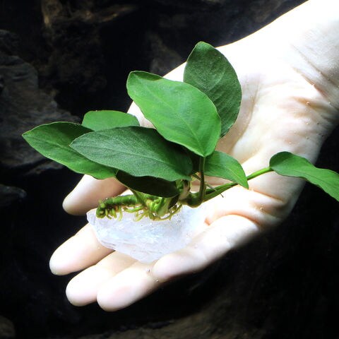 | どんな種類? | 育成難易度 → ■<☆☆☆☆■ 石や流木に着生(張り付く)する性質がある点、水質に幅広く対応し、低光量にも強く、CO2の添加も必要ないことから幅広い用途に使用できる種類です。 アヌビアスをメインとした水槽は非常に落ち着いた印象を与えます。着生すると言う性質を利用すれば立体的なレイアウトを作成したり、底床が薄くなりがちで、対応器具も少なめで本格的に水草を楽しむにはパワー不足となりやすい小型水槽においても本格的なレイアウトを楽しめる1種です。 強い光や、肥料は必要無く、逆にどちらも抑え気味の方が綺麗に育てることができます。CO2の添加が無くても問題なく育ちますが、添加をした方が成長が早いです。コケが付きやすいのですが、葉はしっかりしており食害を受けることがあまり無いので、ヤマトヌマエビやオトシンネグロ等のコケ取り能力の高い生体を多めに入れましょう。 着生させる際は既に伸びている根は出来るだけ短くカットしてしまいます(伸びた根には物に張り付く力がありません)。有茎草の様に光に向かって成長する事が無い為、観賞に適した位置になるように調整して構いません。くくり付ける場合は、ウッドタイト等の使用がお勧めです。糸状のものは着生する前に腐ってしまったり、株を傷めたりすることがあるのであまりお勧めできません。 環境や維持についてはうるさい所は無いのですが、急な温度変化(特に低水温)や、地下茎のような部分を傷つけたり、通水性が悪くゴミや排泄物が大量に溜まった場合、底床に埋め込んでしまった場合は調子を落とす場合があります。また真新しいソイルを使用した水槽や、RO水で維持している水槽など、極端に硬度の低い水槽でもやはり調子を落とすことがあります。 |