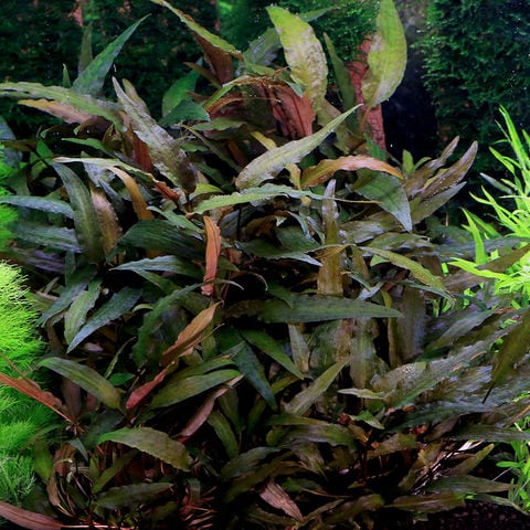 育成難易度 → ★☆☆☆☆ 葉色はで、葉裏は赤色になる種です。生長するにつれ渋みのある色になっていくので、育てるほど魅力の増していく種類と言えます。 レイアウト水槽においては、中景草として流木のそばなどに植栽すると自然の風景を演出することが出来ます。 本種の仲間は丈夫で薄暗い環境で二酸化炭素の添加が無くても育成することができる種です。 クリプトコリネ(Cryptocoryne)は東南アジア原産の沈水~湿性植物です。現地では上流~下流、湿地のような所から清流や小さな小川まで幅広く分布しています。 環境によりブラウン~グリーン系となるクリプトです。 また雨季と乾季がある場所に生えているものも多く、水中~水上を切り替えて生活しています。 サトイモ科の植物は仏炎苞の花を咲かせますが、クリプトコリネはその中でも独特な形をしており魅入られる人も多いです。 産地の違いや環境により非常に多彩な一面を見せてくれるのも魅力の一つといえます。 水草として使う場合レイアウトの隙間をうまく埋めてくれる素材として優秀です。 陰性植物として幅広い使い方が出来ますが、良い環境で育てると見応えのある姿に育ってくれます。 多くの種類は環境の急変を嫌い、特に水質などの変化には敏感で、葉を溶けるように落とす場合があります。多くの場合は、新しい環境に適応するための葉を展開しますが、 株自体が弱っている状態だと根茎まで溶けてしまうことがあるので、環境の急変は抑えるようにします。 クリプトコリネは環境により葉色や草姿を大きく変化するため、見た目での同定は難しいです。 主に同定に使われている手段は仏炎苞と呼ばれる花のめしべの数や弁の形状から判断する方法が使われています。 |