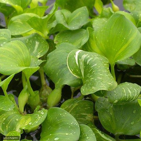 ミズアオイ科(Pontederiaceae)の植物。浮き草としておなじみのホテイ草に、斑が入ったタイプです。