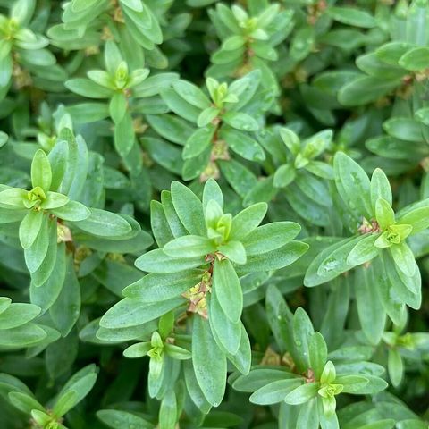 十字型に密に葉がつく有茎で、明るい緑色~赤まで環境によって幅広く変化します。まとめ植えすると、整った印象を与えることができます。