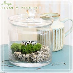 | 使用植物 | ・ホソバオキナゴケ 深緑の色合いが美しい苔です。半日陰で適度な湿度があれば栽培が可能な種類です。 ・オオカサゴケ 傘のような葉を展開するかわいらしい苔です。湿度を保つことで綺麗な傘状の葉を観察する事が出来ます。 |