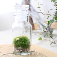 | 管理方法 | 置き場所 直射日光が当たらない明るい場所においてください。 ・ガラス容器は直射日光に当てると直ぐに高温なり蒸れの原因になるので、直射日光が当たらない場所に置いて下さい。 水やり ・2週間~3週間に1度、霧吹きやスポイトで水を与えてください。目安としてコケの表面が乾いてきたら霧吹きやスポイトの水遣りをします。コケの表面が水を貯めているように見える場合は、水のあげすぎです。容器を横にして排水するなどして適量にしてください。 肥料 ・必要ありません。水分や栄養を吸収するような根を持たない苔植物は、葉緑素の栄養だけで育つ構造になっています。 注意点 ・ガラス製品ですので、取り扱いにはご注意ください。 |