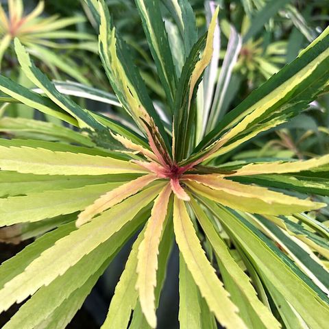 バース便で入荷したオランダプラントの斑が出た株になります。斑は固定されておりません。 葉序は6輪生程度、線形ないし倒披針形、鈍頭、鋸歯縁。葉幅3mm~6mm、葉長最大10~12cm程度。葉表は明るい黄緑色、葉裏は紫色です。 60cm水槽で3灯以上、CO2添加あり、ソイルないし砂、弱酸性~弱アルカリ性、底床の肥料分と液肥を両立させると良いでしょう。 大量の水換えによる水質変化に敏感のため、濾過の効いている落ち着いた環境での育成が望ましいです。 |