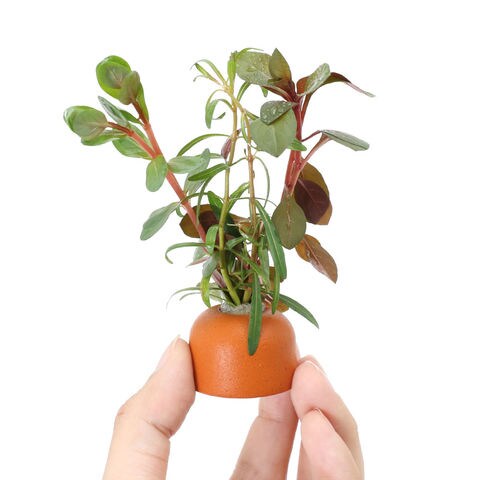 ゼオライトリングで束になっているので、水槽内に置くだけで簡単にレイアウトができます。 到着時の水上葉には緑色の葉が多数あると思いますが、水中展開することにより、赤・黄・茶などに色彩豊かに変化していきます。様々な色に染まっていく水上葉をお楽しみください。 水草が成長してきたらお好みの長さにカットして再び挿し直して育成していただくか、ソイル等に植え替えていただくことをおすすめいたします。 水上葉での発送となります。水中育成の場合ある程度成長すると水中葉になりますので、お好みの長さにカットし、挿し戻してお楽しみください。 ※水草の品種・色・形状はご指定できません。ご了承ください。 ※水草は発根しておりません。抜けてしまった場合はウールを取り出し、挟むようにして戻してください。 |