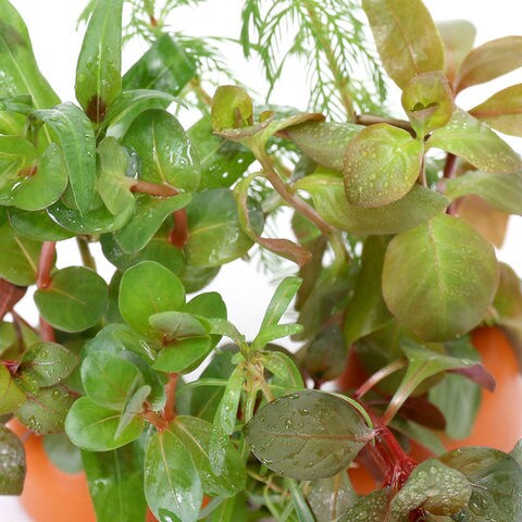 ※20cm以上の小型水槽にお勧めです。そのまま水槽のお好みの場所にそっと置くだけの簡単設置!状態のよい水上葉の寄せ植えです。