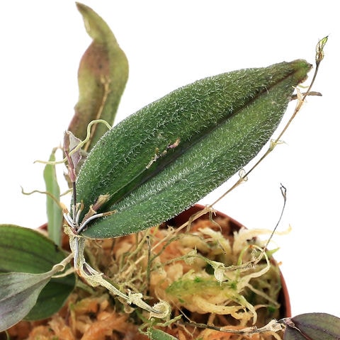 | どんな種類? | 育成難易度 → ★★★★☆ 栽培は空気中の乾燥に注意し、夏場は半日陰の涼しい場所で栽培を行います。 育成難易度は高めになります。 自生地である高山の雲霧林の環境にいかに近づけるかが重要になります。 特に高湿度、通気性、温度がポイントになり、温度15~23℃、湿度約80%が目安になります。 テラリウム水槽や衣装ケースを用いて密閉することで高湿度を維持しやすくなります。 密閉容器で育成の場合は、1日1回~2回程度の換気を行う事で通気性がある環境を再現しやすくなります。 夏季は栽培容器の温度上昇に注意し、ランの栽培において重要な昼夜の温度差を5℃程度つけることが必要です。 強い光は葉焼け等株が傷む原因になりやすく、直射日光等が当たらない環境で植物育成ライトを使用することをお勧め致します。 成長はゆっくりですが、株分けで増やす事が可能です。 |