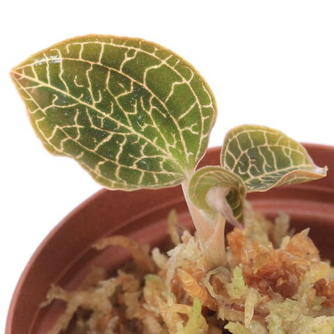 ラン科(Orchidaceae)の植物。 葉が光によって輝くことからジュエルオーキッド(宝石蘭)と呼ばれています。 育成難易度が比較的高い為、育成環境の準備が必要になります。 環境の変化に弱く高温や極度の乾燥は株の状態悪化を引き起こす為、一定の温湿度を保てる容器内での栽培をお勧めしております。 湿度が高い環境を好みますが、土壌の過度な水分は根腐れを引き起こしやすいため注意が必要になります。 当店では水苔での管理をしております。 直射日光は葉焼け等の原因になりますので育成時はテラリウム植物向けの育成ライトをお勧め致します。 ※植物向きライトの場合でも至近距離で当て続けたり、光が強すぎたりする場合は葉焼けしてしまいます。 肥料は基本的には必要ありません。あげすぎてしまうと枯れの原因になります |