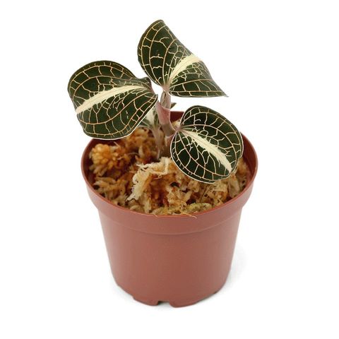 ラン科(Orchidaceae)の植物。 葉が光によって輝くことからジュエルオーキッド(宝石蘭)と呼ばれています。 育成難易度が比較的高い為、育成環境の準備が必要になります。 環境の変化に弱く高温や極度の乾燥は株の状態悪化を引き起こす為、一定の温湿度を保てる容器内での栽培をお勧めしております。 湿度が高い環境を好みますが、土壌の過度な水分は根腐れを引き起こしやすいため注意が必要になります。 当店では水苔での管理をしております。 直射日光は葉焼け等の原因になりますので育成時はテラリウム植物向けの育成ライトをお勧め致します。 ※植物向きライトの場合でも至近距離で当て続けたり、光が強すぎたりする場合は葉焼けしてしまいます。 肥料は基本的には必要ありません。あげすぎてしまうと枯れの原因になります |