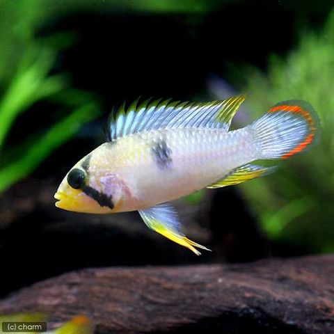 | 種類詳細 | ペルー原産のアピストグラマです。1996年にナイスニィに良く似たアピストグラマとして初輸入され、1997年に記載されました。オスは独特の体型と尾筒に大きな黒い模様を持ち、ラウンドテールの尾ビレの縁の模様が美しい種です。メスは黒色の斑紋が持ち、ナイスニィのメスとは腹部の黒い斑で判別が付きます。この黒班には個体差があり、中には全く黒班の見られない個体もいます。飼育、繁殖は低めのpHであれば容易ですが、オスの気が荒いのでペアリング時には注意が必要です。 |