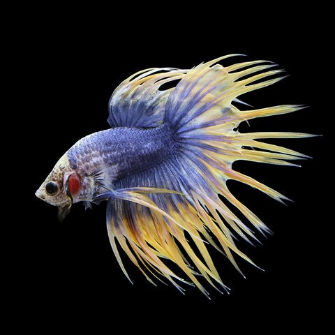 | 種類詳細 | 古くから親しまれているベタの改良品種です。王冠に例えられるギザギザとしたヒレが特徴的な品種で、べタの改良品種の中でも古くから知られています。 軟条部分の切れ込みの深さには個体差が見られ、切れ込みが深い個体では美しい反面、尾開きが悪いことがあります。また、先端部分だけが切れ込む個村はコームテール等とも呼ばれクラウンテールらしく見えません。 クラウンテールの“ショウクオリティ”(ショウベタ)の中には、“Xレイ”や“Xクロス”と呼ばれる尾ビレの先端部分が交差する個体や、“キングクラウンテール”と呼ばれる先端部分の間の大きな個体も知られています。 体色は他の尾形に比べてソリッドタイプが少なく、マルチカラーが多いのも本品種の特徴のひとつです。トラディショナルタイプと同様に酸欠、低水温、低pHにも強く、丈夫なためグラスなどでも飼育できます。 |
