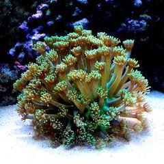 ハードコーラルの中では水質悪化に強い種類です。骨格がとても軽いため水流に流されてしまう事がありますので強い水流は避けてください。
