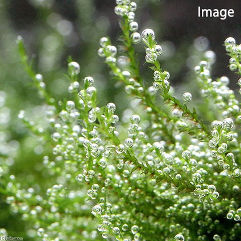 | どんな種類? | 一見ただのモスのように見えますが、水中で十分な光と二酸化炭素があればリシアに勝るとも劣らない気泡を無数に付けるモスです。 その姿から別名クリスタルモスとして流通することもあります。 高光量、低水温、ろ過の効いた綺麗な水を好みます。活着力は強いです。高水温での育成は不向きの為、水温には注意が必要です。 |