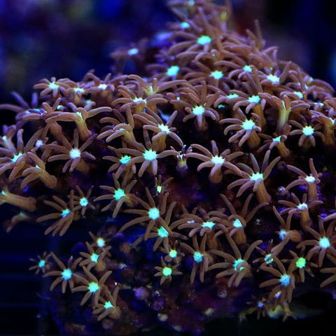 蛍光グリーンのスポットが星空を思わせるスターポリプのバリエーションです。