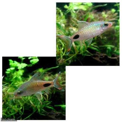 | 種類詳細 | インド原産の中型プンティウスの仲間です。 幼魚と成魚で模様が異なり、幼魚では背ビレと尾ビレの赤いスポットと尾ビレ付け根のブラックスポットが可愛らしい種です。 成魚のオスは背ビレが伸長し非常に風格のある姿となり、日本の金魚のように口の周りには追星と呼ばれる白いポツポツが見られます。 南インドに生息するサウスインドバルブ(Puntius mahecola)等の良く似た種もいくつか知られ、近年ではレッドライン・トーピードバルブとのハイブリッド個体も作出されています。 飼育は容易で、活発に泳ぐので、遊泳空間を大きくとり、飛び出し事故に注意してください。 |