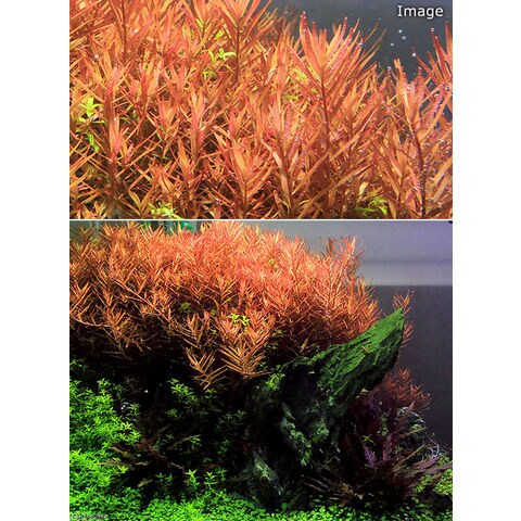 | ロタラ ロトンディフォリア ベトナム H’ra | ロトンディフォリアの一種で、大変美しい赤系ロタラです。 高光量、CO2添加という環境下ではさらに色合いが増し、環境によりオレンジ~黄色のグラデーションから真紅の色合いまで赤みが変化します。 赤みの度合いは光量に強く影響を受けるため、高光量下に植栽することでより美しい姿を楽しめます。 植栽や差し戻し直後はグリーンロタラの様に横へ匍匐し、その後一斉に上へと葉を展開します。育成は容易で簡単に密度の高い茂みや後景を作れるためレイアウト等に大変使用し易いです。 ピンチカットなどのトリミングにも強く成長初期は背も低く密生するため、トリミング次第では中景としても美しい姿を楽しめます。 簡単に赤系の水草を育ててみたいと言う人にもお勧めです。 美しく強烈な色合いを簡単に見ることのできる他には中々無い種の水草です。 グリーンロタラ等の緑系水草と一緒に植えることでもレイアウトによく映えます。 |