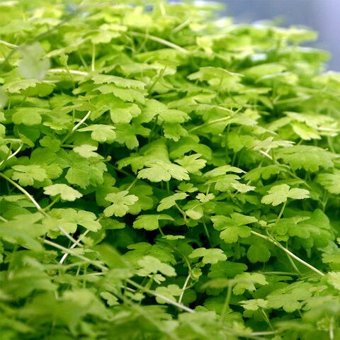 | どんな種類? | 育成難易度 → ★★★☆☆ オーストラリア ブリズベン川産として入荷したオーストラリアン ノチドメです。 1cm程度の可愛い葉を作りながらこんもりとした茂みを作っていく為、自然感を出しやすい種類です。 匍匐させながら密に育成するには3灯から4灯の光量が必要です。 また後景草がオーバーハングしている下に植えると、立ち上がって育つためレイアウトでは前景~中景のつなぎとして活躍します。 育成は比較的簡単で、水質の適応範囲も広く、光量が強ければCO2添加無しでも育てられます。 植え込みの際は、葉を2~3節程度に短くカットすると匍匐しやすくなります。 長く取った場合は立ち上がるようになるので、使う場所にあわせて使うことができます。 好環境下では生長が比較的早いので、ある程度の間引きが必要になります。 トリミングには強いので、厚みを増した部分は先の細いハサミでランナーを適度にカットしながら間引き、光が当たらない部分を減らしましょう。 日本に自生しているノチドメに比べ、葉の切れ込みが若干深くなる点で判別が可能です。 |