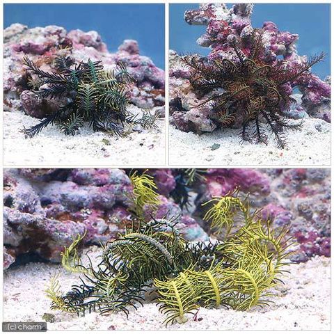 | 種類詳細 | 古代生物として知られるウミユリ網に含まれる生き物です。 鮮やかな色をした腕を持つものが多く、しっかりとした巻枝を持つことも本種の特長です。 本種はウミユリ網に含まれる生物ですが、同じ棘皮動物であるヒトデやウニ、ナマコと同様に快適な場所を求めてよく動き回る性質を持っています。 ニシキフウライウオやカクレエビ、コマチコシオリエビなど本種を宿主とする生物が多く存在し、一緒に飼うことで興味深い生態を観察することができます。 |