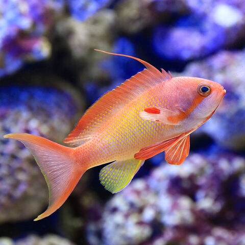 | 種類詳細 | インド洋産のキンギョハナダイで、ポピュラーな太平洋産と比べ体色がより鮮やかになる美種です。 オスはメスよりもさらに色が濃く乗るようになります。 自然下では大きな群れをつくり、その中の一番大きな個体がオスになります。 |