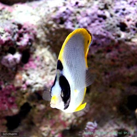 | 飼育のポイント | 餌付けは難しいほうではありませんが口が小さいため導入時はコペポーダなどの冷凍飼料をこまめに与えると良いでしょう。 また他のチョウチョウウオに比べて若干神経質な面がありますので、まわりの環境や混泳相手に気を配りましょう。 同種・近縁種及び体形・色が似た魚とは争うことがありますので注意が必要です。 またサンゴを食べてしまう食性ですので、コーラルをメインにしたリーフタンクでの飼育は向いていません。 |