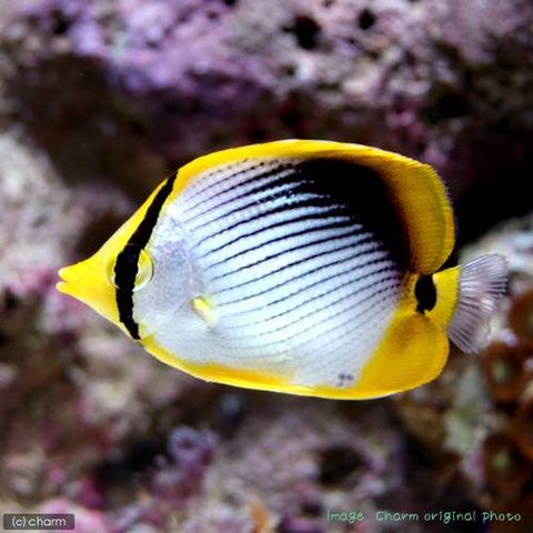 | 種類詳細 | サンゴ礁で見られるチョウチョウウオの中でも比較的ポピュラーな種類です。 体側を縁取る黄色、黒色の背中及び頭部のバンド、そして名前の通り斜めに入る細かいラインが夜明け前の空をイメージさせられます。 日本でも死滅回遊魚として房総半島周辺まで北上します。 |