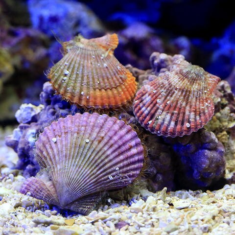 長生きさせるためには海藻及び海草の茂ったリフジウム水槽などの微小生物が発生している環境が適しています。 本水槽に入れる場合は、サンゴ用プランクトンフードや冷凍コペポーダ等を時折与えるとよいでしょう。 貝が死んでしまった場合、水質が悪くなり他の生体に影響を及ぼす場合がございますので、死んでしまった場合は早めに取り出だしてください。 富栄養な水質や光の強い環境下では貝殻に藻類が付着し、色が褪せてしまうことがあります。 貝殻にコケが目立つようになってしまったら硬めのブラシで擦り、光の少ない暗めの環境で飼育すると殻の色が戻りやすくなります。 |