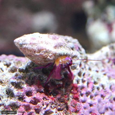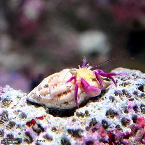 | 種類詳細 | 水深20~30m程度の海中洞窟や岩の割れ目に生息する小型のゼブラヤドカリの一種です。 体色は触覚とはさみ及び脚は鮮やかな紫色をしていますが体の中心に近い部分は黄色をしています。 飼育に関しては他のヤドカリと同様で問題ないと思われますが導入の際はしっかりと水合わせをしてから入れましょう。 |