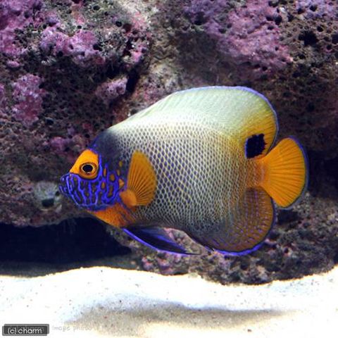 | 飼育のポイント | 成魚は大型コミュニティタンクの主役としてもオススメの魚ですが、気が強めなので混泳させる際は加害者とならないように気を配ってあげる必要があります。 餌もあまり選り好みしない飼育しやすいヤッコですが、水質管理を怠ると白点病やリムフォスシティス病に罹ることがありますので注意しましょう。 大型になりますので、将来的に90cm以上の水槽が必要になります。 同種・近縁種及び体型・色が似た魚とは争うことがありますので注意が必要です。 またサンゴを食べてしまう食性ですので、コーラルをメインにしたリーフタンクでの飼育は向いていません。 |