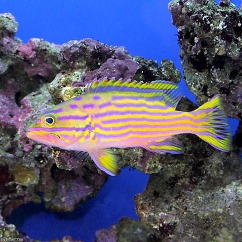 黄色い体色に青紫色のラインが入るとても美しい種類です。