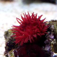 | 飼育のポイント | 刺胞毒が強いためクマノミやエビなどは共生しません。 またそれ以外の魚やサンゴに対しては触れるとダメージを受けてしまう場合がありますので混泳の際は注意が必要です。 餌はクリル等を小さく切って与えてあげましょう。 底砂は棲管が埋まるくらいの厚さにしてあげる必要があります。 |