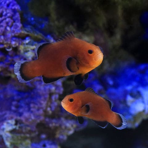 | 種類詳細 | カクレクマノミの改良品種です。 ミッドナイトオセラリスはバンドが無く、体全体が黒く染まりますが、こちらの個体は暗いオレンジ色をしており夕日のような色合いをしています。 同じカクレクマノミの品種改良種であるネイキッドオセラリスに似ますが、そちらほど明るい色はしていません。 共生するイソギンチャクは、ハタゴイソギンチャク、センジュイソギンチャク等を好みますが、環境により入らない可能性もあります。 雄性先熟型の性転換を行うので小さい個体がオス、大きくなった個体がメスになる性質を持っています。 |