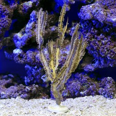 | 種類詳細 | カリブ海産の好日性ヤギの一種で、幅広な体の両端に小さいポリプが咲くのが特徴です。 好日性のヤギは餌の匂いではなく光に反応しポリプを開きます。 プラグ付きなので、底砂やライブロックに刺して固定することが出来ます。 |