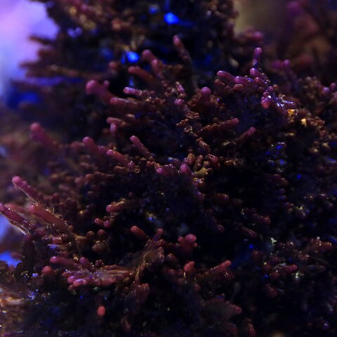 明るい環境であれば特に難しい点もなく育成できますが、栄養塩が多い環境の場合藻類に覆われ枯れてしまうのである程度清浄な水質を保つ必要があります。 またヤッコやハギ類は海藻類をつつくので混泳の際は注意が必要な反面、伸びてサンゴに覆いかぶさるとその成長を阻害しますのでその際はトリミングが必要です。 |