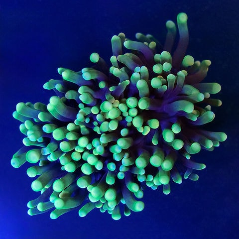 | 種類詳細 | イソギンチャクのような触手をもつチョウジガイ科のサンゴです。 色彩のバリエーションが多く、褐色から蛍光グリーンや青みのかかったもの、紫がかったものなど様々なものが存在します。 ゆらゆらと水流に揺れる触手がとても優雅で美しいハードコーラルです。 色彩のバリエーションは多くありませんが、グリーンが濃い色の個体は非常に美しいです。 |