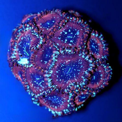 | 種類詳細 | イソギンチャクに近い種類のソフトコーラルで4~8mmのポリプが浅い海の岩の上にマット状の共肉でつながった大きな群体をつくります。 カラーバリエーションが豊富でグリーン、オレンジ、ピンク、レッドなどがありポリプの中心部に色が付いているものもあります。 丈夫ですのでサンゴ入門におすすめの種類で光・水流・水質ともに最低限の設備で飼育可能ですが 環境を整えてあげると色はよく揚がり増殖するスピードも早くなります。 給餌は基本的に不要ですが与える場合は液体もしくは粉末状のものを週に1度程度吹きかけてあげると良いでしょう。 |