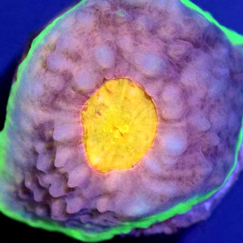 | 種類詳細 | 非常に丈夫で飼育しやすい為、ハードコーラル入門にピッタリなサンゴです。 色はブラウン、グリーン、レッド、ブルーなどの単色の物やブルーにレッドのドットなど様々なカラーがあります。 オレンジやグリーンの個体は蛍光色に輝くものも存在し、水槽内を幻想的に彩ります。 キッカサンゴの仲間は毒性が強いので他のサンゴに触れないようにご注意下さい。 給餌は基本的に液体飼料を与えます。クリル片等を週に1度程度与えるのも良いでしょう。 |