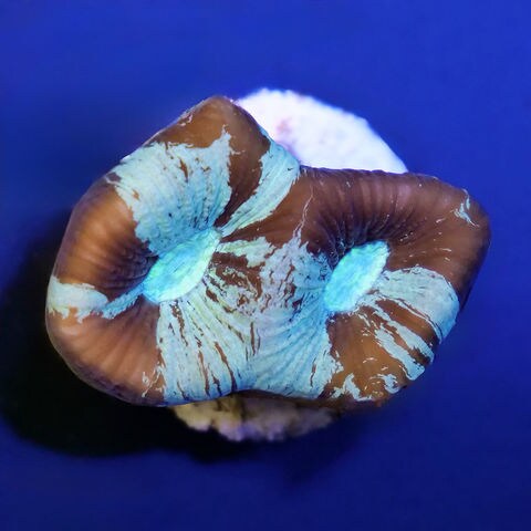 (サンゴ)フラグサンゴ オーストラリア産 キクメイシsp. チョコミント Mサイズポリカプラグ付き(1個)yl‐44 北海道・九州航空便要保温