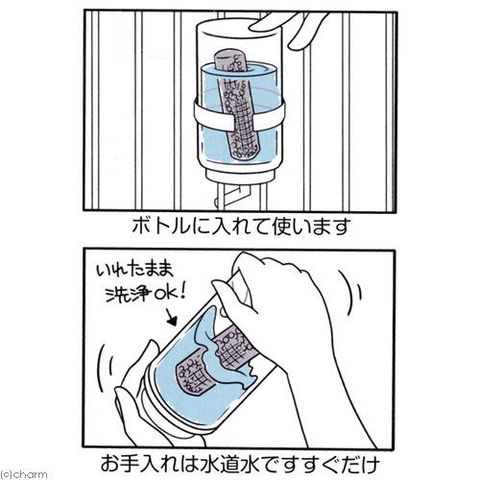 使用方法 ●ペット用のドリンクボトルに水道水と一緒に入れてお使いください。