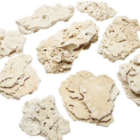 | 内容量 | 【個数の目安】 ・Sサイズ相当4~5個 ・Mサイズ相当4~5個 合計9個前後 ※1個毎の質量の違いにより、個数が上下することがあります。 総重量:約10kg前後 ※空隙と多孔質構造が多く残る天然の石灰岩ですので、サイズ感が近いものでも1個あたりの重さには差があります。 |