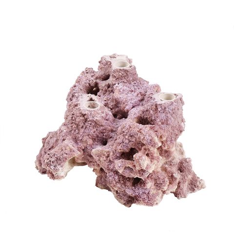| 特長 | 【セラミックプラグサンゴベース】の特徴 ●マルコロックを素材に使った、一般的なセラミックプラグを挿し込めるホール加工がされたフラグサンゴベースです。 ●表面にはリアルな石灰藻を思わせるコーティングが施された、ライブロックレプリカ仕様となっています。 ●砂地だけでなくベアタンクに置いても安定するように、底面はフラット処理がされています。 ●標準的なセラミックプラグの軸を挿せるプラグホール(直径10mm、軸の長さ25mmまで差し込み可)を備えています。 【3プラグホール】の特徴 ●セラミックプラグのフラグサンゴ3個を挿せる作りになっています。 ●30cmキューブ水槽レイアウトにおける副石として使えるサイズ感となっています。 【マルコロック】の特徴 ●マルコロックはフロリダ半島マルコアイランドの陸地で採掘された、クリーンで上質なアラゴナイト石灰岩です。 ●従来のライブロックのようなウミケムシやシャコ、カニなど予期せぬ生物の持ち込みがありません。 ●地質の変成をほとんど受けておらず、サンゴの骨格由来となる多孔質構造を多く残しています。 ●空隙の多い多孔質構造をしているため割りやすく、加工によるサイズ調整も容易です。 ●割った破片を接着していくことで、お好みの形へ自由にカスタマイズすることが可能です。 |