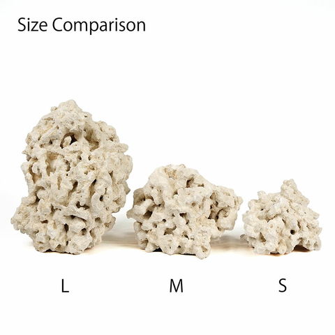 | 特長 | 【マルコロック】の特徴 ●マルコロックはフロリダ半島マルコアイランドの陸地で採掘された、クリーンで上質なアラゴナイト石灰岩です。 ●従来のライブロックのようなウミケムシやシャコ、カニなど予期せぬ生物の持ち込みがありません。 ●地質の変成をほとんど受けておらず、サンゴの骨格由来となる多孔質構造を多く残しています。 ●空隙の多い多孔質構造をしているため割りやすく、加工によるサイズ調整も容易です。 ●割った破片を接着していくことで、お好みの形へ自由にカスタマイズすることが可能です。 【リーフセーバー】の特徴 ●リーフセーバーは多孔質で内部まで空隙の多い構造をした、塊状のマルコロックです。 ●従来のライブロックのような好気ろ過と嫌気ろ過を兼ねたろ材としても機能する構造となっています。 ●接着により立体的な加工を行いやすいマルコロックです。 【エッジレス(Edgeless)タイプ】の特徴 ●リーフセーバーから表面が風化で丸くなったタイプを選別したものとなります。 ●エッジ(Edge)タイプと比較して内部の密度が高く、嫌気領域を作りやすい構造になっています。 ●重さがあり安定感があるので土台部分への使用にも適しています。 【Sサイズ】の特徴 ●小型水槽から大型水槽まで幅広く使えるサイズ感となっています。 ●手頃なサイズ感で割る手間を最小限に抑えることができます。 |
