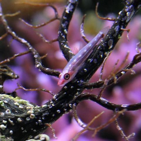| 飼育のポイント | 小型のハゼなので、こまめな給餌をした方がより状態良く飼育できるでしょう。 また、ヤギや枝状のサンゴなどハゼがつかまることのできるものを入れてあげると良いでしょう。 |