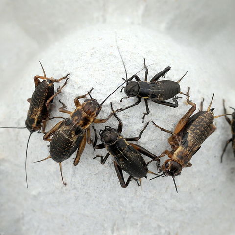 | どんな種類? | 東南アジア周辺に生息するコオロギです。爬虫類・両生類を初めとした多くの動物の生餌として用いられます。ヨーロッパイエコオロギと比べて「体重が重い」「動きが鈍い」などの利点があります。飼育は簡単で、プラケースや衣装ケースなどの容器で飼うことができます。水切れに弱く、水を切らすと大量死させてしまうこともあります。逆に、水をこぼしたりして常に湿った状態になるとアンモニアが大量発生し大量死につながる事があります。また、飼育容器が小さい場合・隠れ家が少ない場合には共食いをする恐れがありますのでご注意下さい。 |