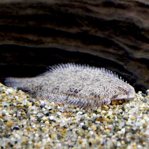 | 種類詳細 | ニューギニア島原産のカレイです。 水槽内では活発に泳ぐことは少なく、砂に潜っていたり壁面に吸着していることが多いです。 腹側だけでなく眼のある側でも壁面に吸着できる非常にユニークな特徴を持ちます。 本種は卵胎生であるともいわれておりますが情報が少なく詳細は不明です。 飼育は水質にもうるさくなく、塩分を必要としないため飼育は容易ですが、スレに弱く注意が必要です。 |