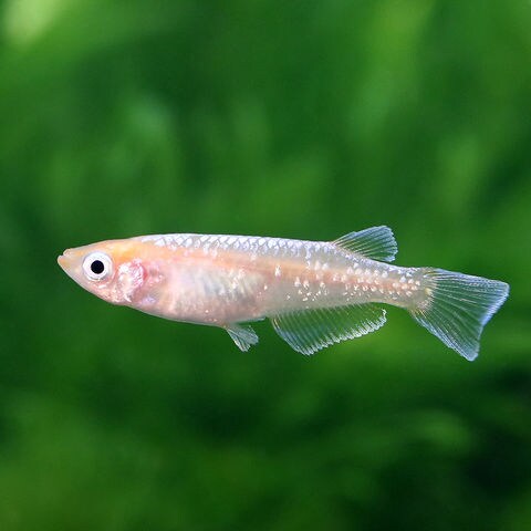 | 繁殖 | 繁殖は容易で、屋内でも屋外でも繁殖させることができます。 背ビレに切り込みがあり、尻ビレが幅広いのがオスでこれらの特徴を持たないのがメスです。 オスとメスをある程度の匹数用意することで、メスが総排泄口付近に卵をぶら下げている姿を見ることができます。 1ペアでも繁殖行動は確認でき、増やすことができます。 産卵床としてマツモなどの水草や、ホテイアオイなどの浮草を用意すると水草の茎や葉、浮草の根に卵が産み付けられます。 また、産卵床がない状態だと過抱卵になったり、卵を水槽底やシリコン部分に産み付ける可能性があります。 産卵は朝に行われることが多く、一度産卵が始まると数日間で何度も産卵が行われます。 |